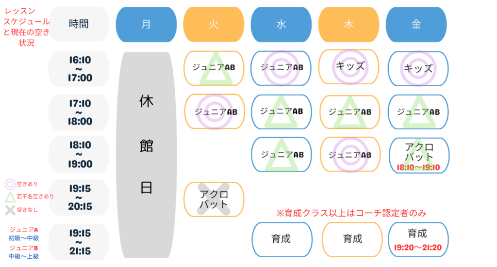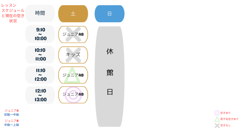 現在のクラスの空き状況になります。(令和7年11月30日更新)