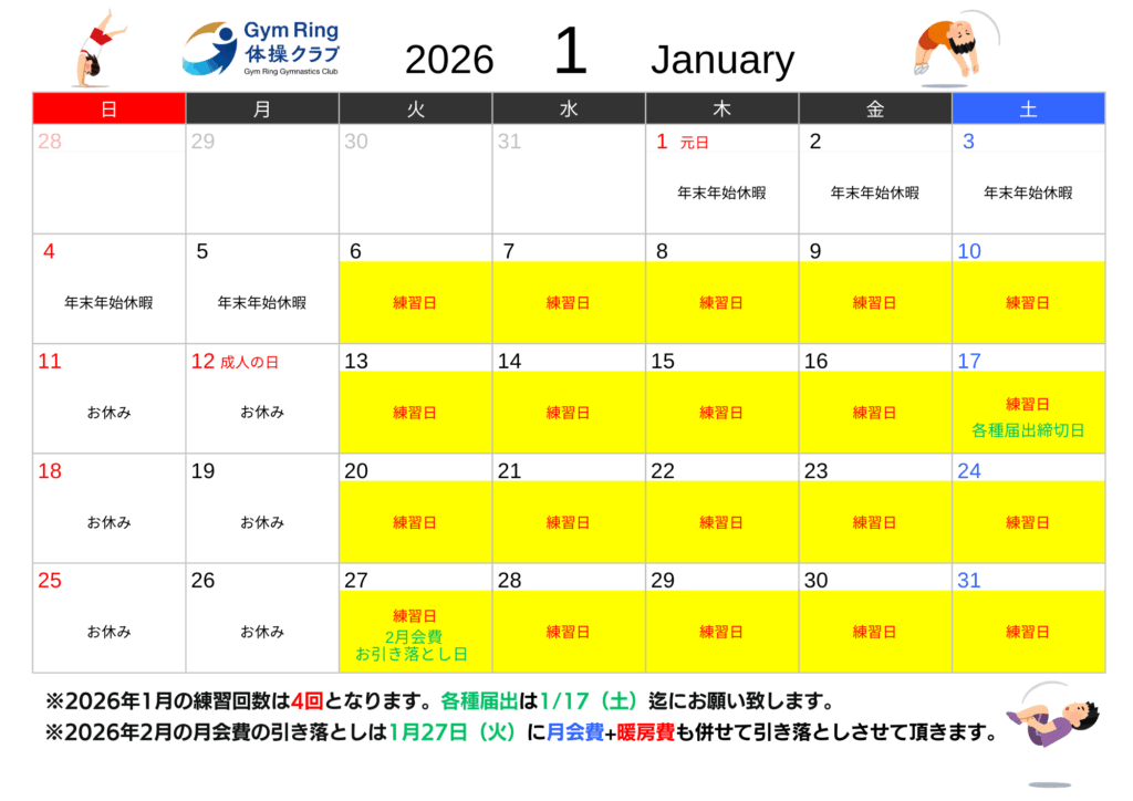 2025年11月のGymRing体操クラブのスケジュールになります。