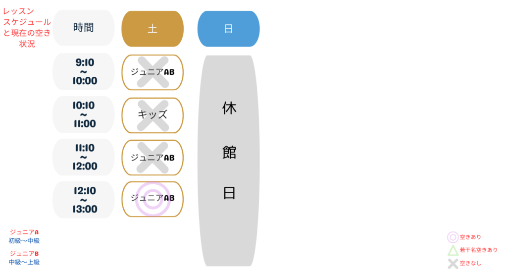 現在のクラスの空き状況になります。(令和8年2月18日更新)